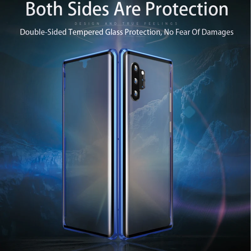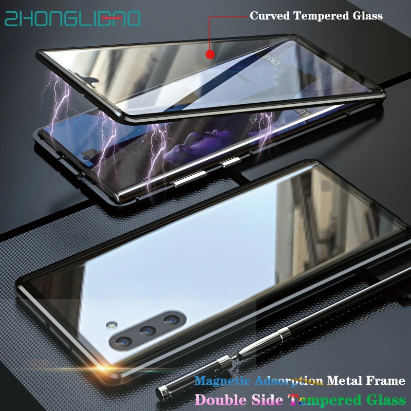 Note10+ 360 Full Body Front Back Curved Glass Magnetic Adsorption Metal Case for Samsung Galaxy Not
